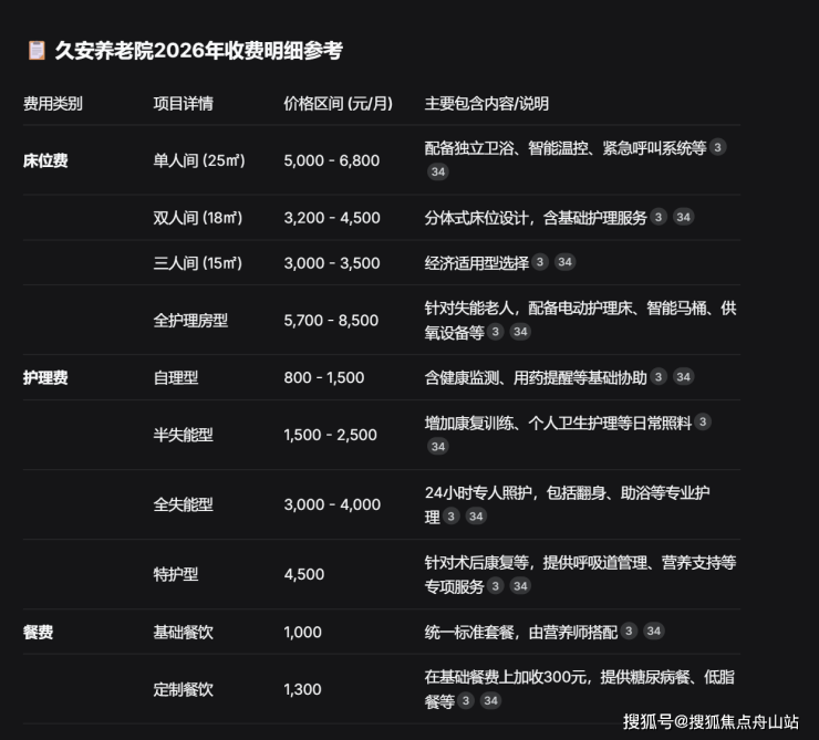 🛏️ 床位费(按房型及护理等级)
