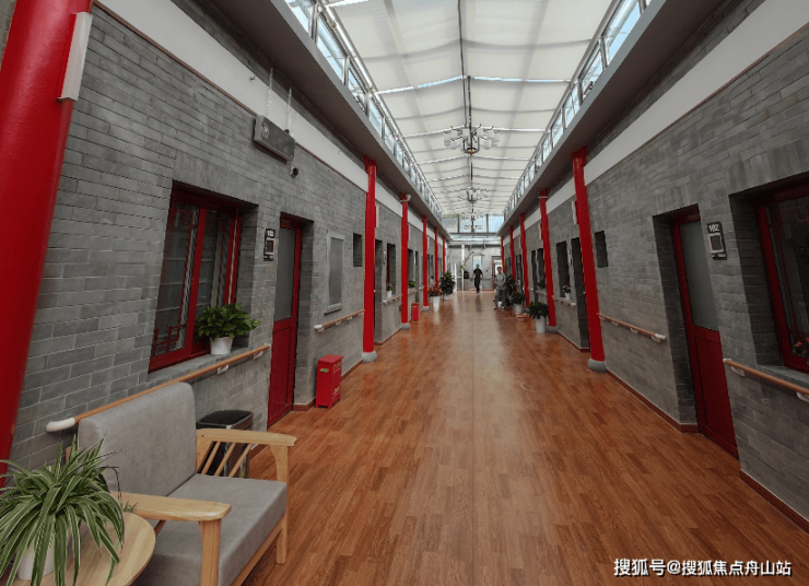 自理区:阳光棚连廊串联客房与公共活动区,四季赏银杏、紫藤。