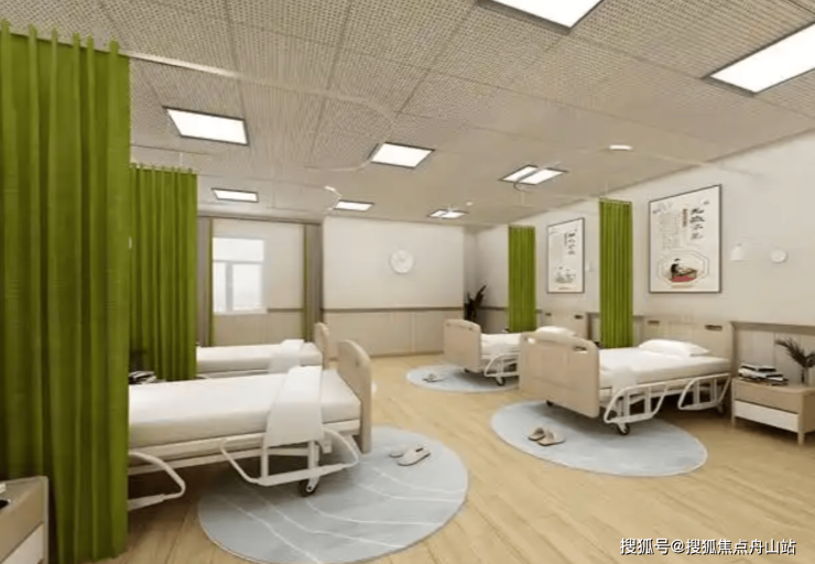 护理院占地8000㎡,采用园林式布局,设有屋顶景观花园和多功能活动大厅。所有房间均配备中央空调、医用摇床、智能呼叫系统及无障碍卫浴设施,24小时电子巡更系统保障安全。