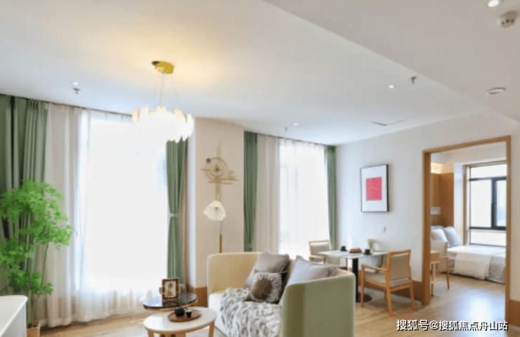 适老化设计:全屋地面无高差、无门槛,居室门宽1.2米,方便轮椅出入;家具高度、角度、软硬度均从长者人体功能学出发设计。房间配备含有供氧及呼叫系统的治疗带,床头、客厅、卫生间随处可见紧急呼叫按钮,医护24小时待岗随时响应。