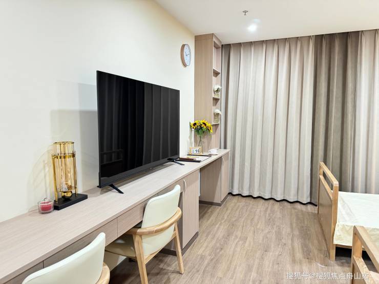 适老化设计:所有房间配备毫米波雷达跌倒监测仪、紧急呼叫系统,单人间智能护理床可调节角度。